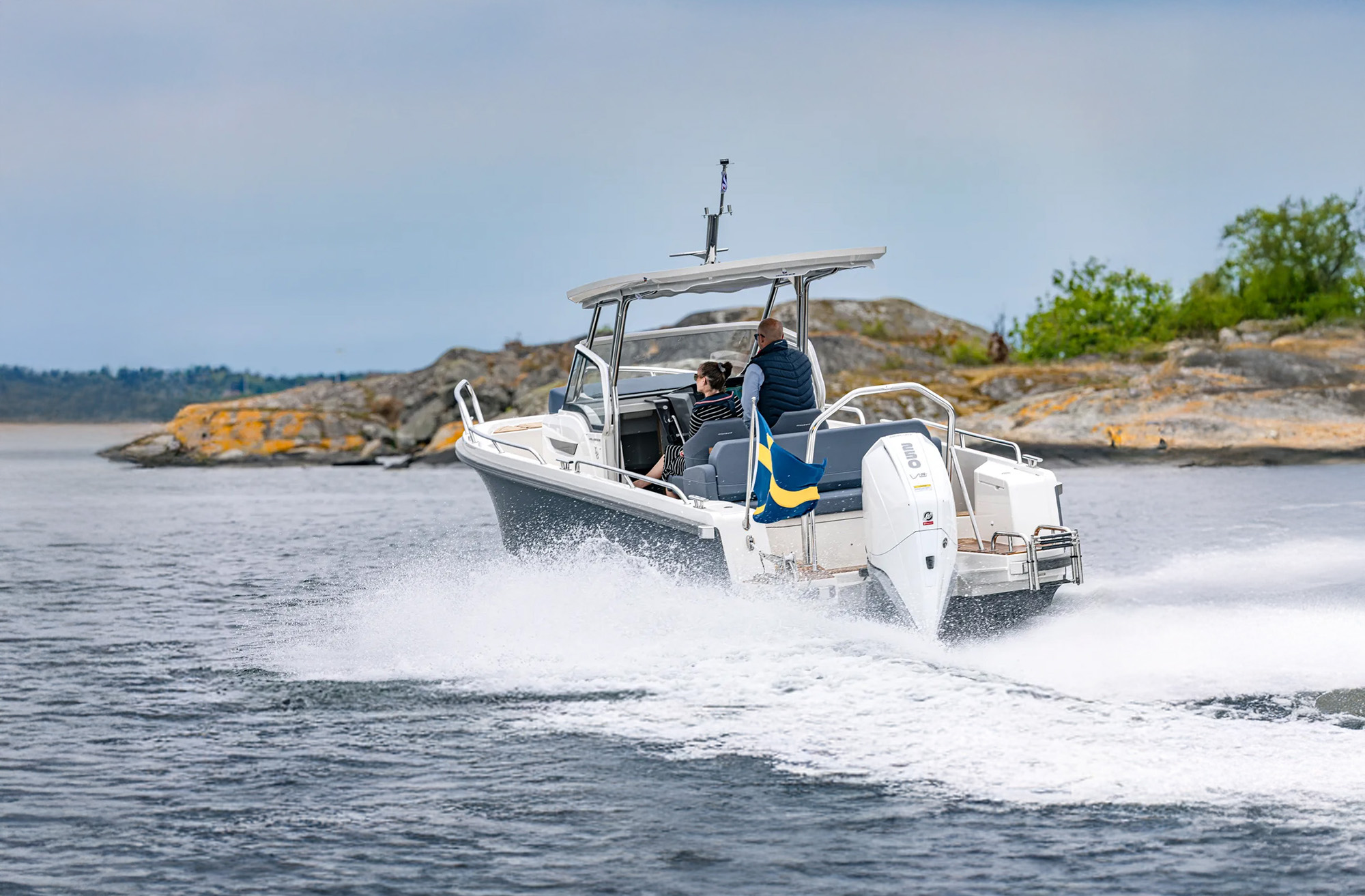 Köp en ny Nimbus 305 Coupé, W9 eller T8 hos oss – och få ett komplett startpaket värt 33 800 kr på köpet. Vi bjuder på vinterförvaring första året, sjösätter båten till våren och står för fri transport i hela södra Sverige under kampanjen.